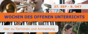 In diesem Jahr bieten wir erstmals über 2 Wochen Einblick in unseren Unterricht an, in den Wochen des offenen Unterrichts. In der Zeit vom 27.09. bis 08.10.2021 haben Sie die Möglichkeit, in den Gesangs- und Instrumentalunterricht unserer Dozentinnen und Dozenten zu schauen.